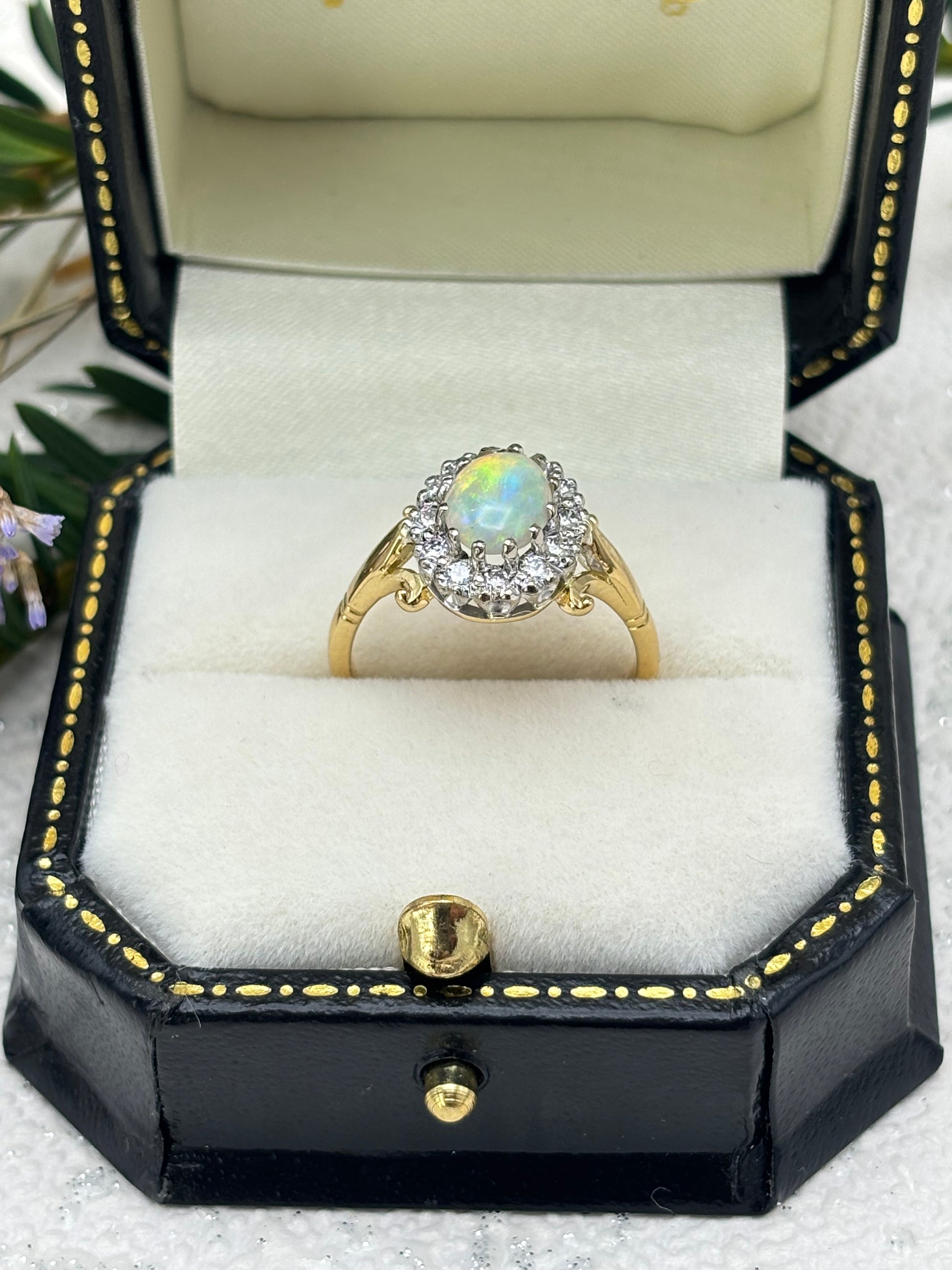 Vintage 18ct Gold Opal and Diamond Cluster Ring.