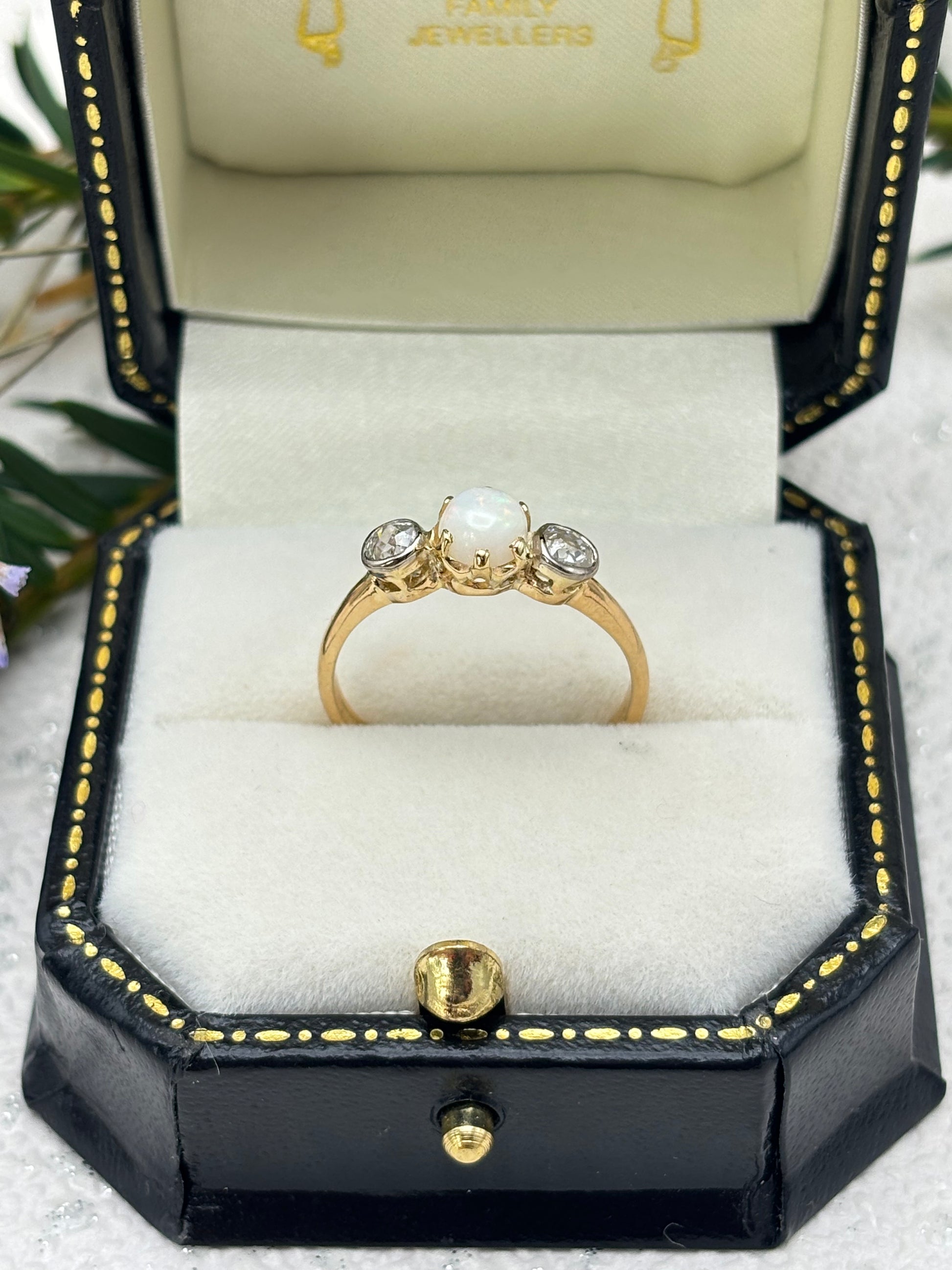 18ct Gold Opal and Diamond Three Stone Ring - Vintage