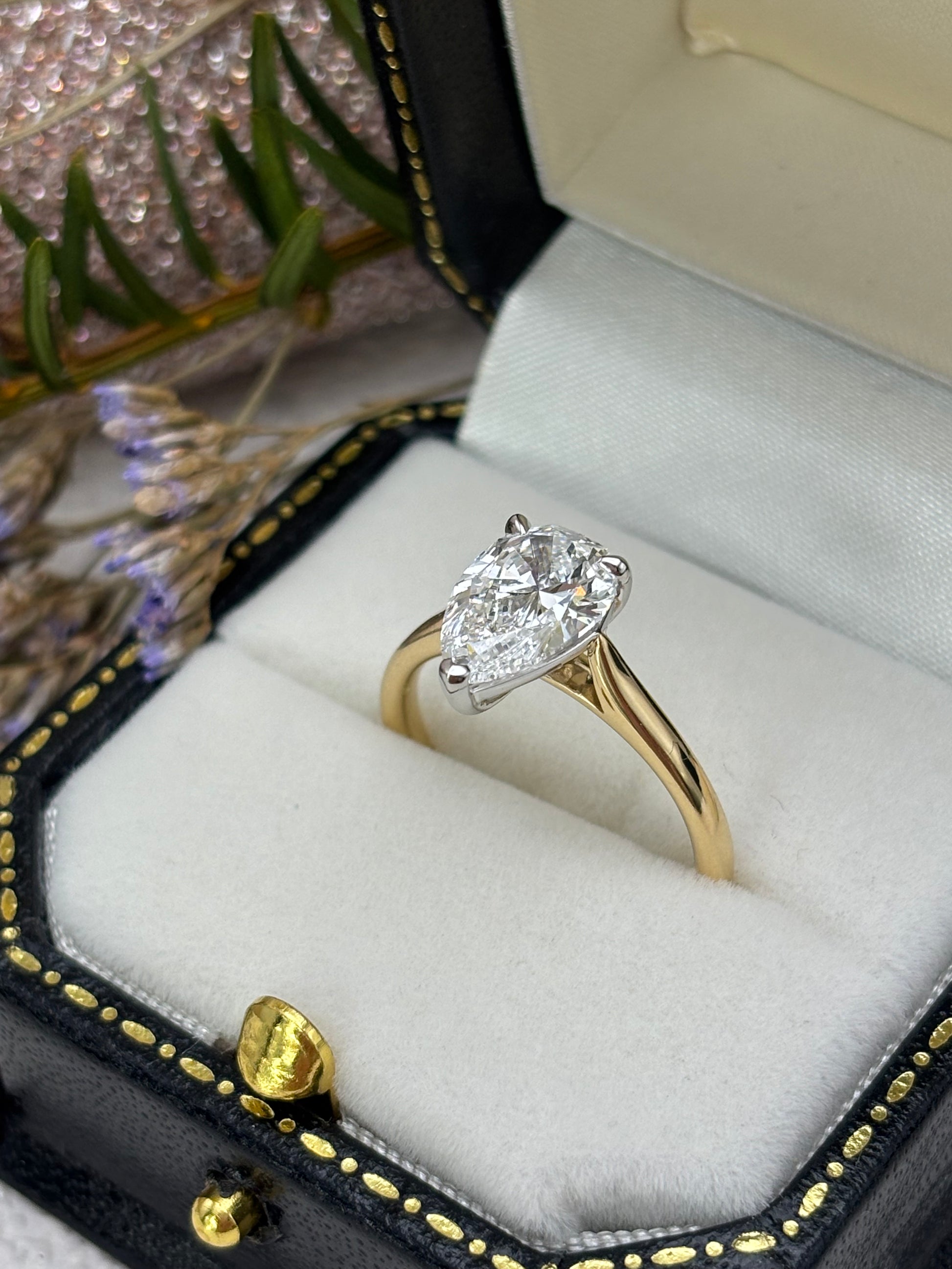 18ct Yellow Gold and Platinum Pear Cut Diamond Solitaire 2.00ct - Lab-created