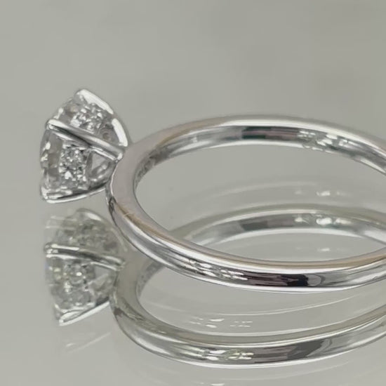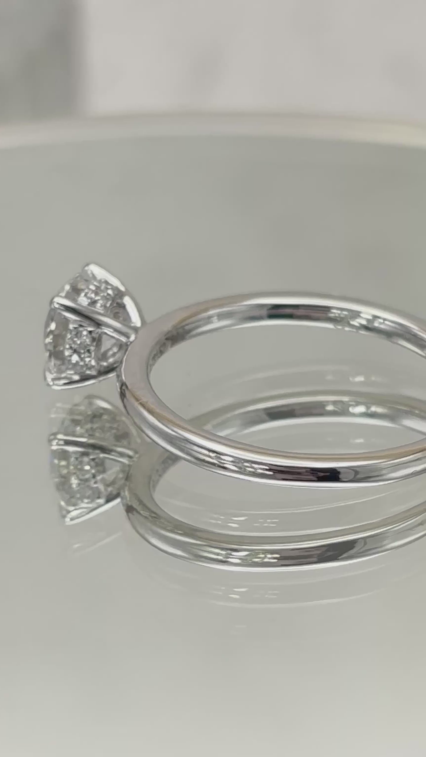 Discover the beauty of this platinum solitaire, thoughtfully designed with a 1.00ct lab-created round brilliant diamond that delivers stunning sparkle and clarity. A hidden halo of diamonds sits gracefully beneath the main stone, gently amplifying its radiance and adding an extra dimension of light to your ring. The clean platinum setting lets your diamond shine while the concealed halo brings a touch of understated elegance. Whether you're celebrating a special moment or treating yourself, this responsibly sourced piece combines modern style with the timeless appeal of a classic solitaire, offering both beauty and peace of mind.