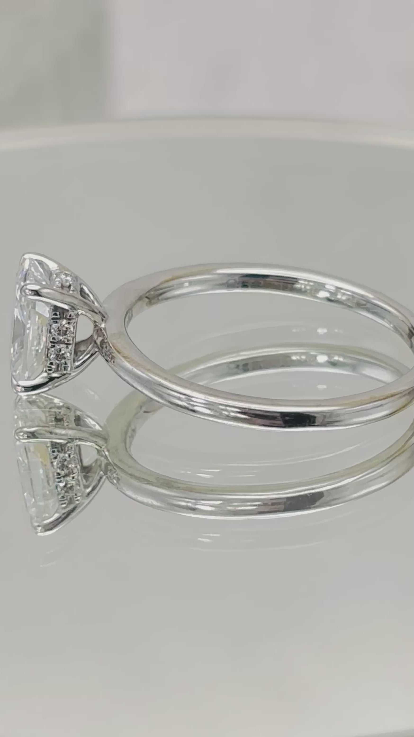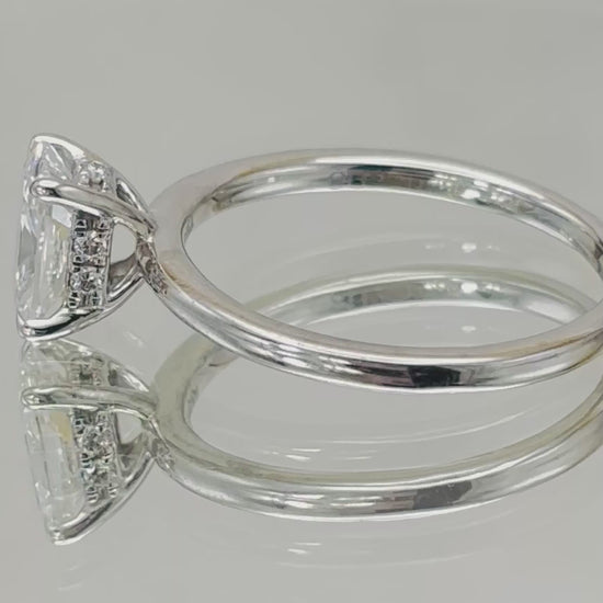 This exquisite platinum solitaire presents a 1.00ct lab-created Radiant cut diamond, prized for its exceptional brilliance and geometric faceting. Beneath the centre stone lies a concealed diamond halo, adding subtle depth and radiance that enhances the overall luminosity of the piece. The streamlined platinum setting allows the Radiant cut to command attention whilst the hidden halo creates an understated layer of sophistication. A refined choice for those who appreciate responsibly sourced diamonds and contemporary design with an element of refined intrigue.